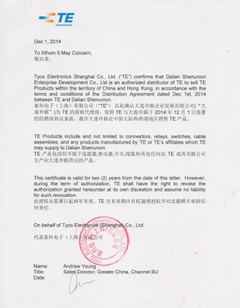 大連申聯被授予泰科電子產品代理商